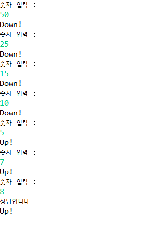 맞출 때까지 up/down을 출력
