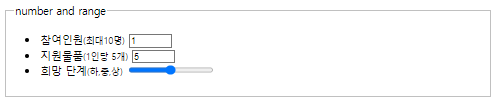 숫자 입력 필드. 슬라이드 막대를 이용해 숫자 입력