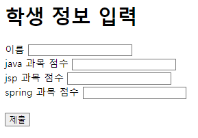 student.jsp에서 학생의 이름과 java, jsp, spring의 점수를 입력받아서