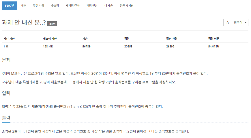 5597번: 과제 안 내신 분..?