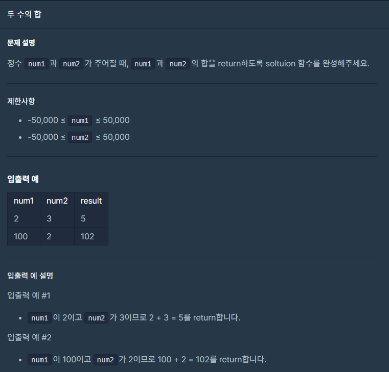 Lv. 0 두 수의 합 문제 자바 풀이입니다