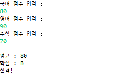 System.out.println("학점 : B\n합격!");