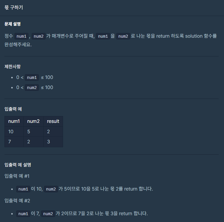 Lv. 0 몫 구하기 문제 자바 풀이입니다