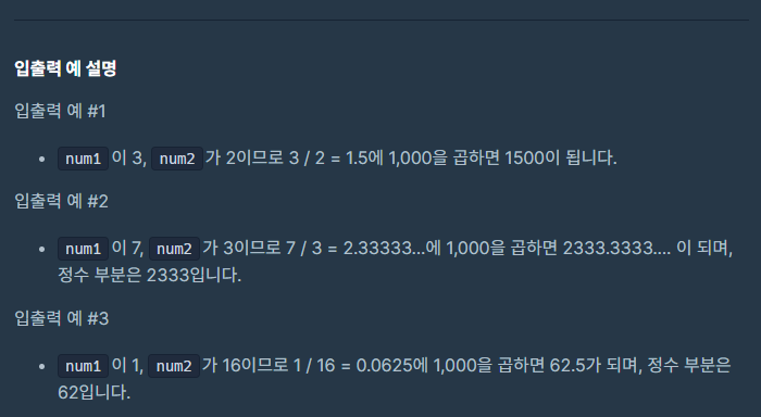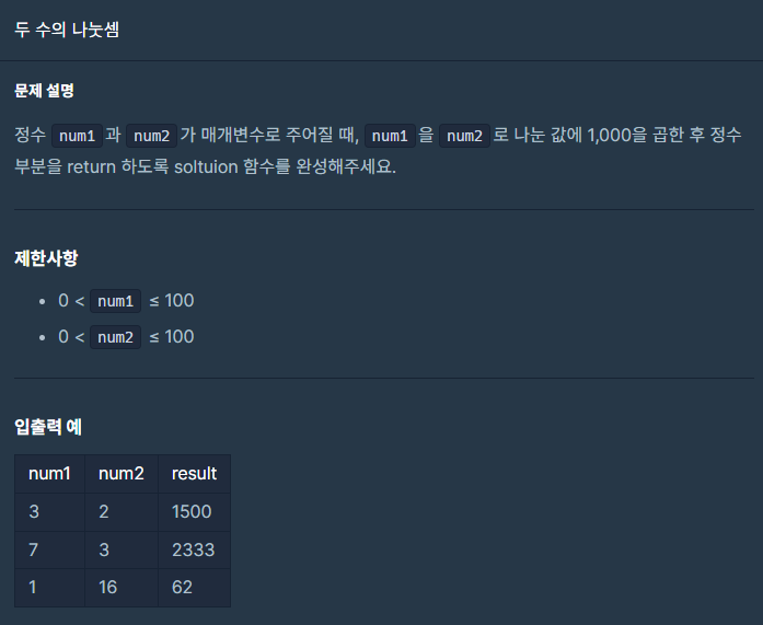 Lv. 0 두 수의 나눗셈 문제 자바 풀이입니다
