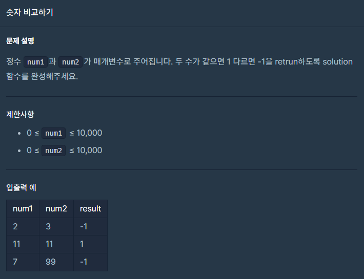 Lv. 0 숫자 비교하기 문제 자바 풀이입니다