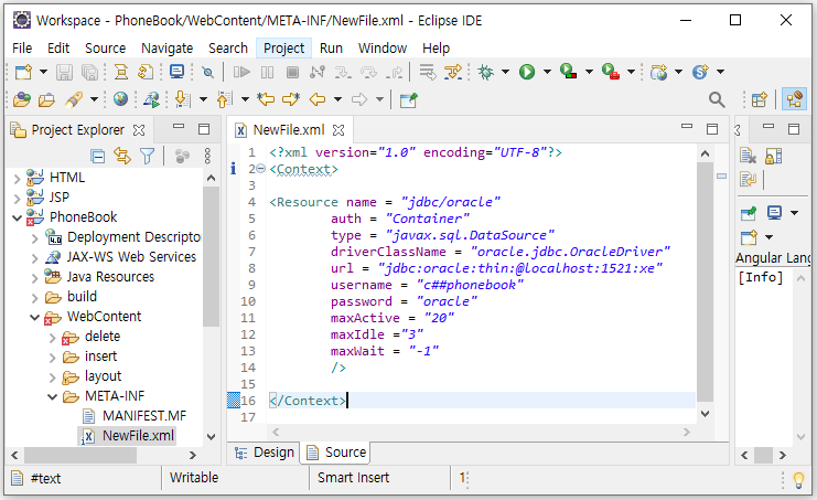 WEB-INF > lib 파일 > .xml 파일 생성 > Source