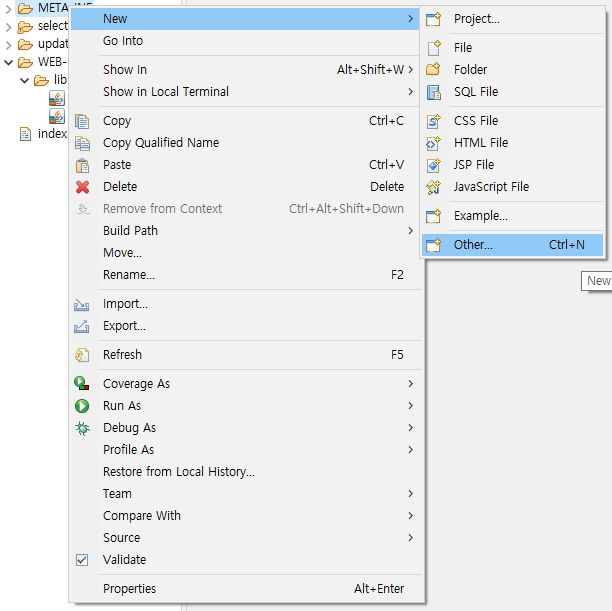 JSP 프로젝트 파일 내에서 WEB-INF > lib 폴더에 복사 붙여넣기