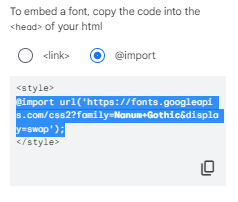 3. Link 항목에 있는 소스 복사 & 글꼴 이름 기억