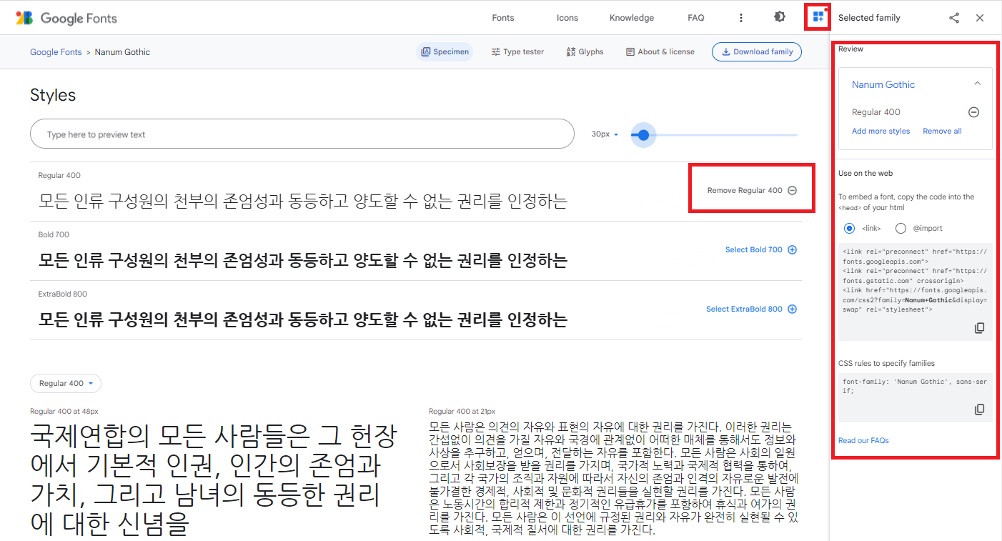 5. font-family 속성을 이용하여 웹 폰트 글꼴 이름 사용