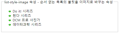 <legend>list-style-image 속성 - 순서 없는 목록의 불릿을 이미지로 바꾸는 속성</legend>