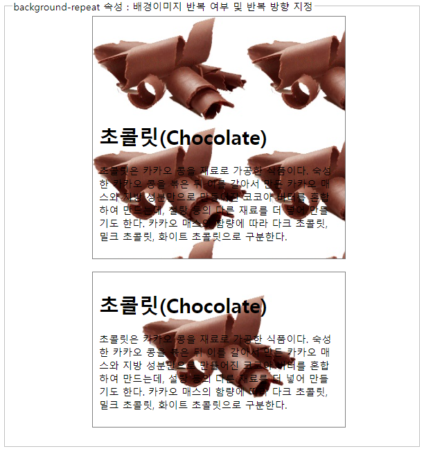 : 배경이미지 반복 여부 및 반복 방향 지정</legend>