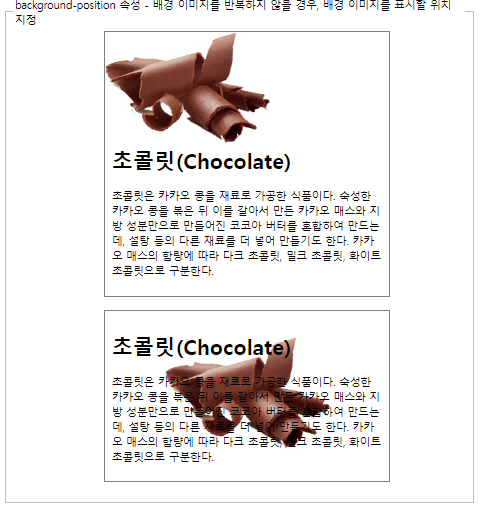 <legend>background-position 속성 - 배경 이미지를 반복하지 않을 경우, 배경 이미지를 표시할 위치 지정</legend>