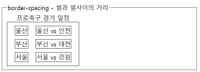 <legend>border-spacing - 셀과 셀사이의 거리</legend>