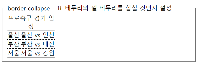 <legend>border-collapse - 표 테두리와 셀 테두리를 합칠 것인지 설정</legend>