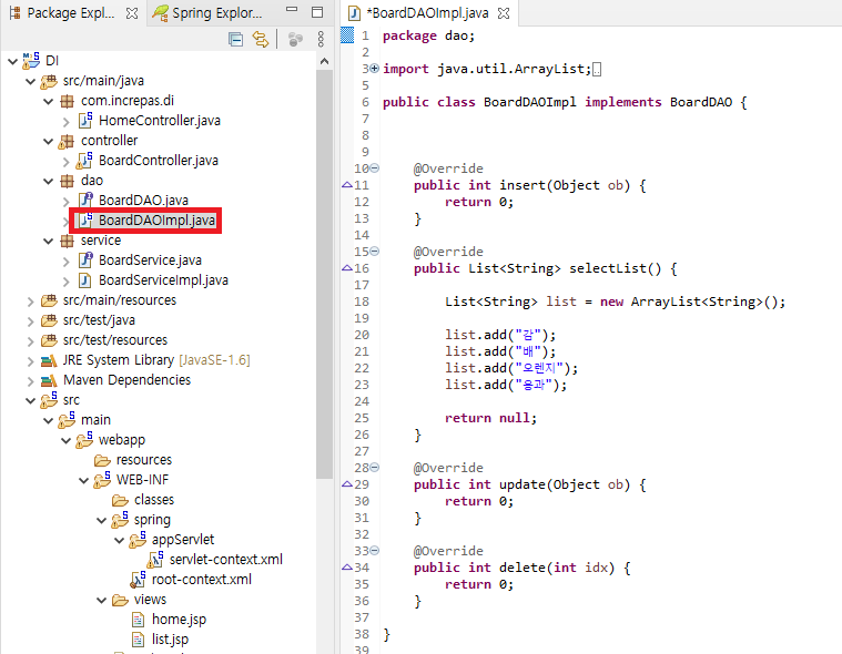 <bean id="boardDAO" class="dao.BoardDAOImpl" />
