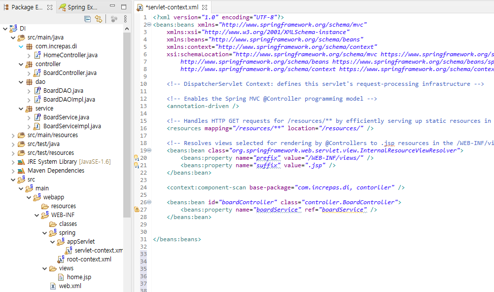 : servlet-context.xml에서 setter로 컨트롤러 수동 생성