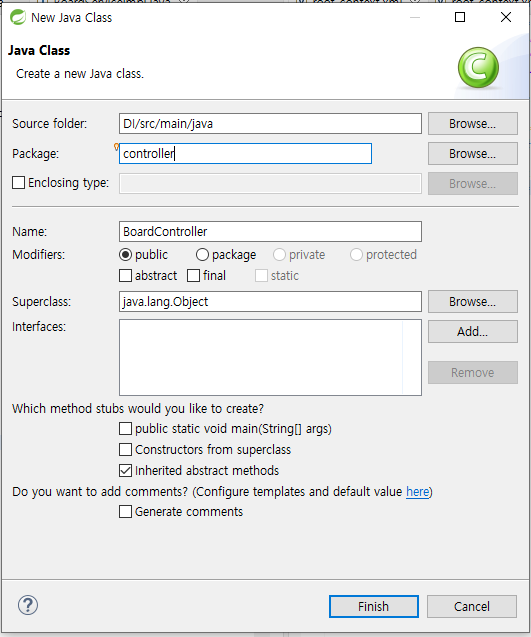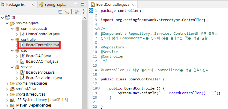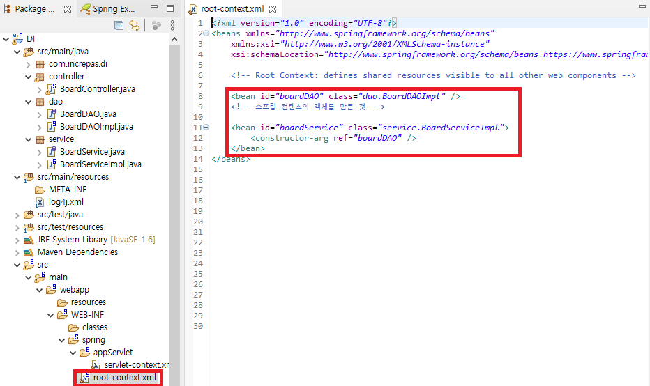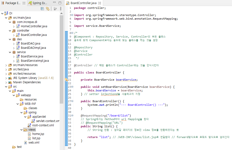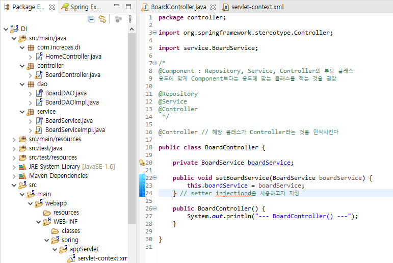 <beans:bean id="boardController" class="controller.BoardController"> <!-- setter로 수동 생성한 컨트롤러 -->