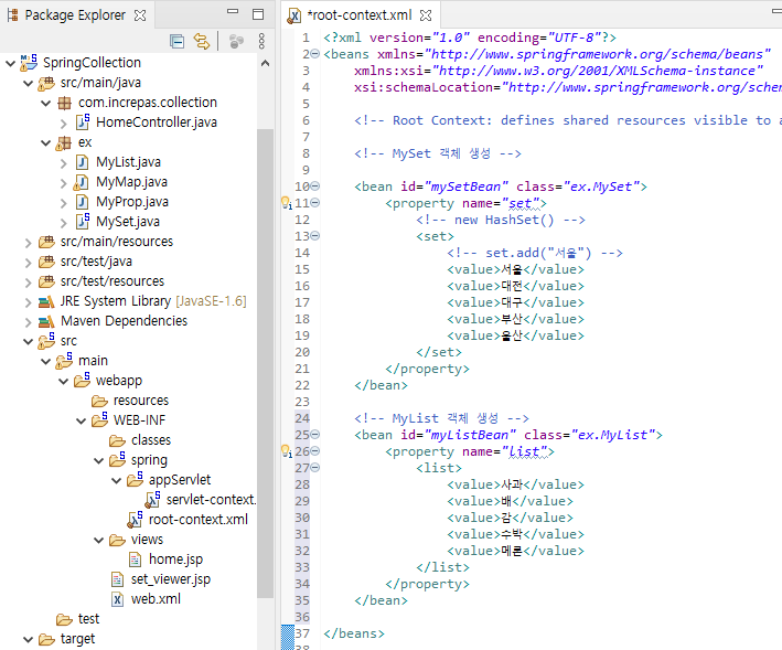 <bean id="mySetBean" class="ex.MySet">
