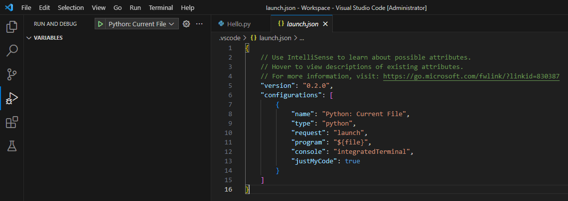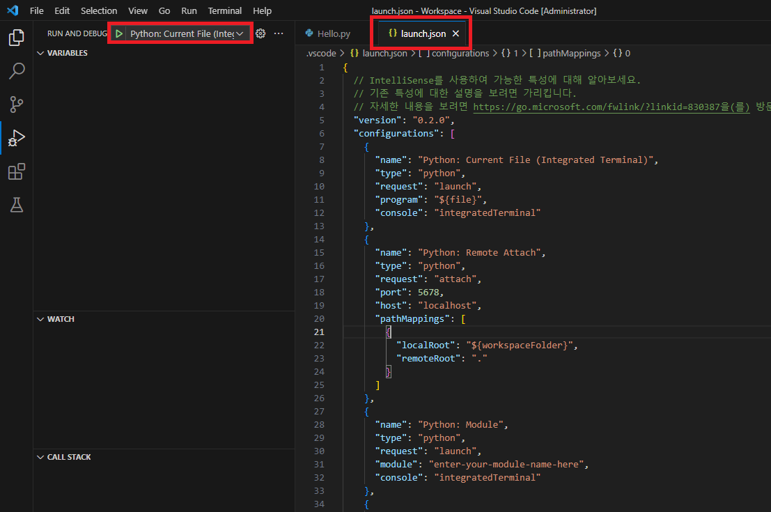 코드 저장 후 ▷ 실행 및 디버깅 버튼 클릭