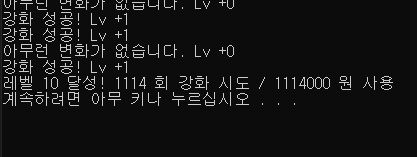 그냥 몇 번 더 돌려 봤는데 1114회 강화 시도 진짜 선넘은 거 아니냐..