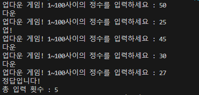 user = int(input("업다운 게임! 1~100사이의 정수를 입력하세요 : "))