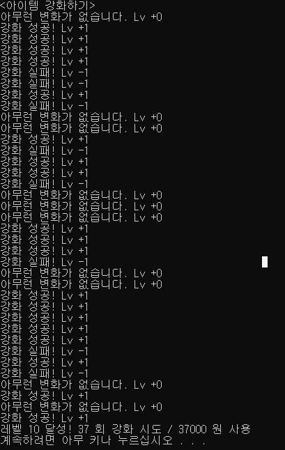 print("<아이템 강화하기>")