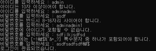 아이디는 반드시 10자리 이상패스워드는 반드시 8 ~ 16자리 사이