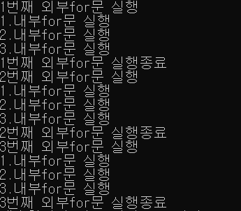 print("{}번째 외부for문 실행종료".format(i + 1))