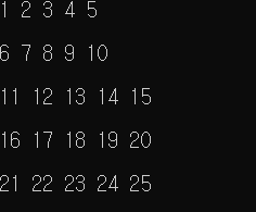 for i in range(1, 26, 5):