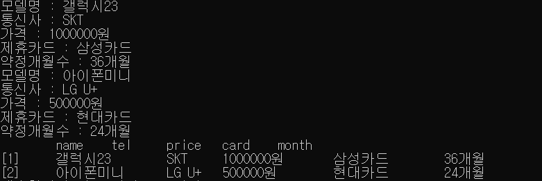 a = MobileEx("갤럭시23", "SKT", 1000000, "삼성카드", "36")
