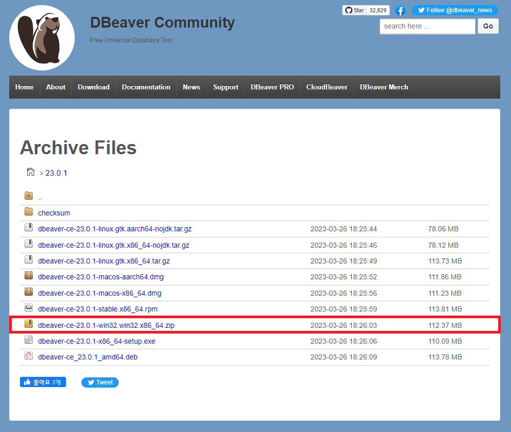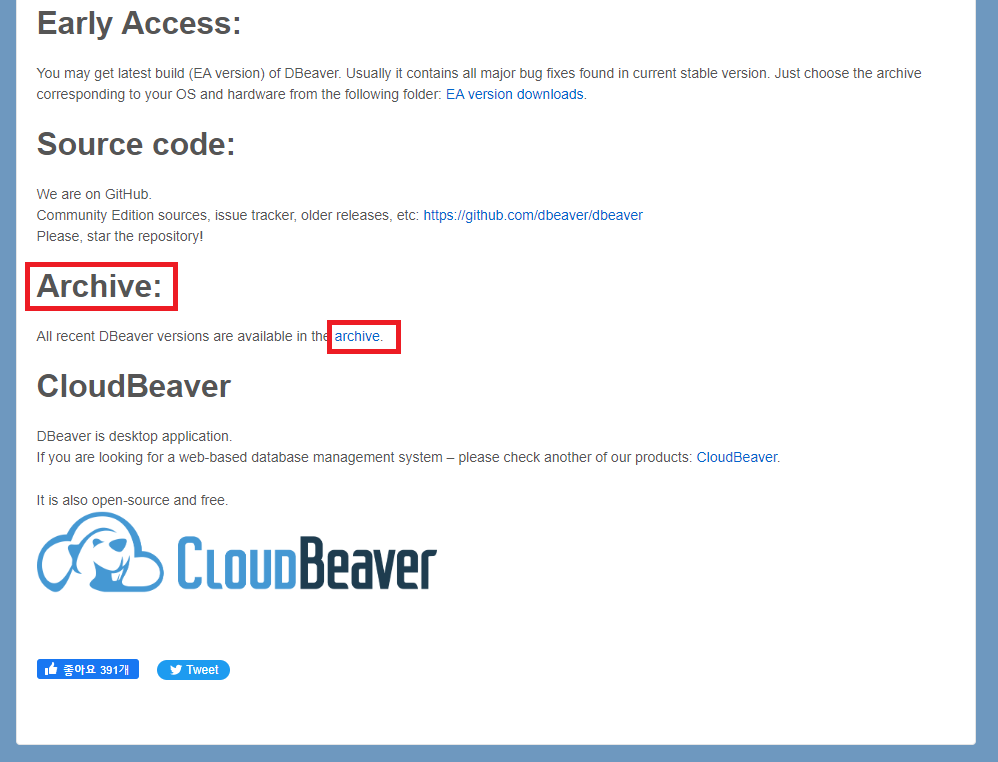 페이지 하단의 Archive: 항목의 archive로 이전 버전 다운로드 페이지로 이동