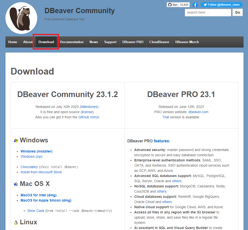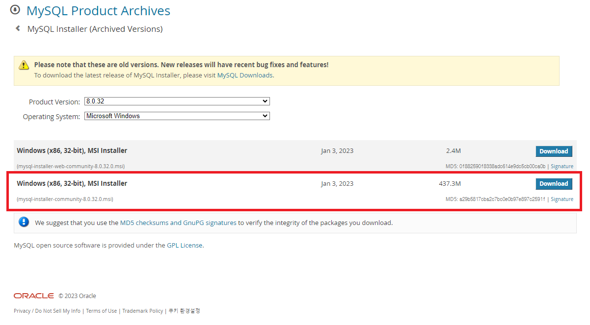 DOWNLOADS 탭 하단의 MySQL Community (GPL) Downloads