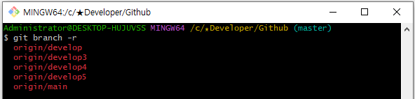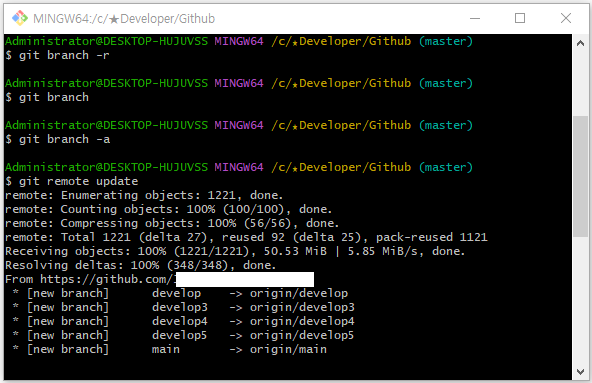 -> 이 때 remote update를 통해 가져온 브랜치를 출력