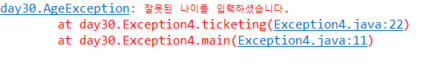 throw new AgeException("잘못된 나이를 입력하셨습니다.");