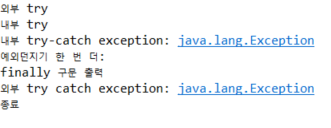모든 예외 클래스들은 Exception 클래스를 상속받으므로 Exception으로 처리 가능