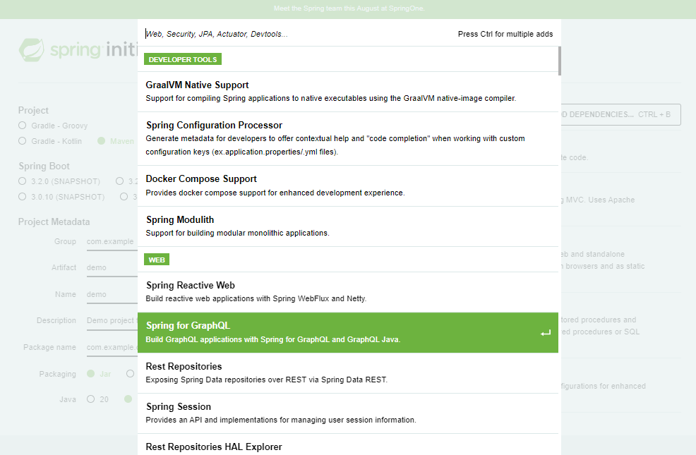 링크 메인 화면에서 스프링 부트 프로젝트 생성 시 사용할 프로그램들의