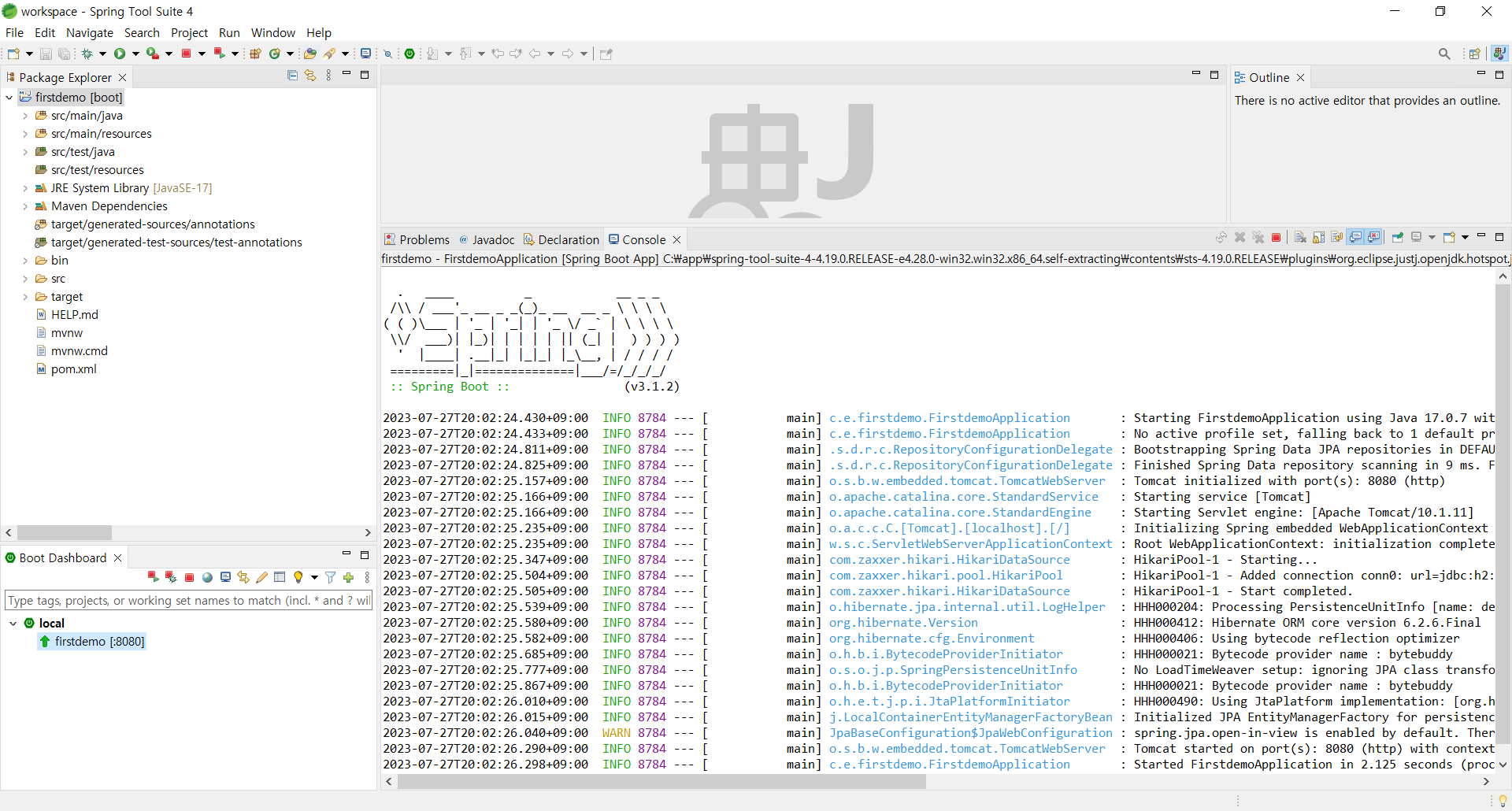 Spring Boot 시작하기 Spring STS 4 + Spring boot 3.1.1 + JAVA JDK 17