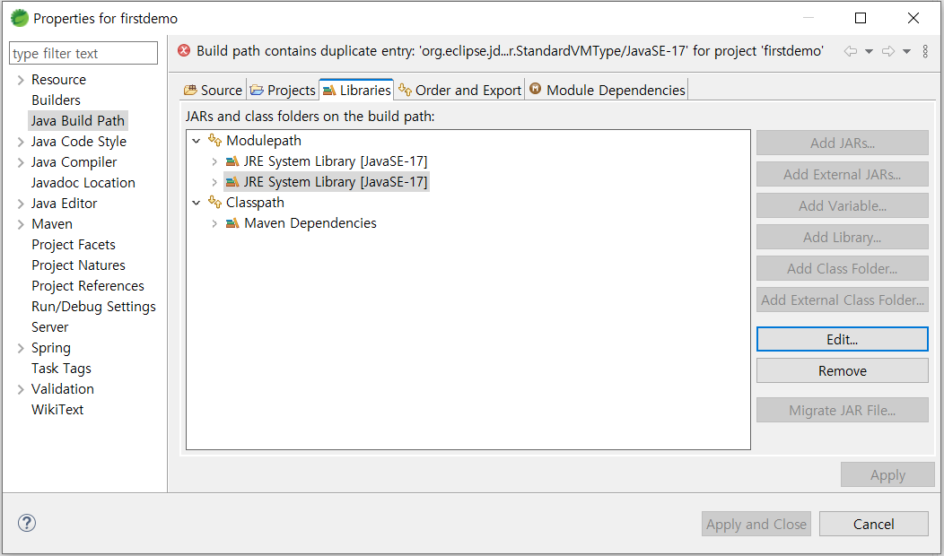* 저는 이미 자바17버전에 맞게 설정된 상태라 오류가 없었습니다만