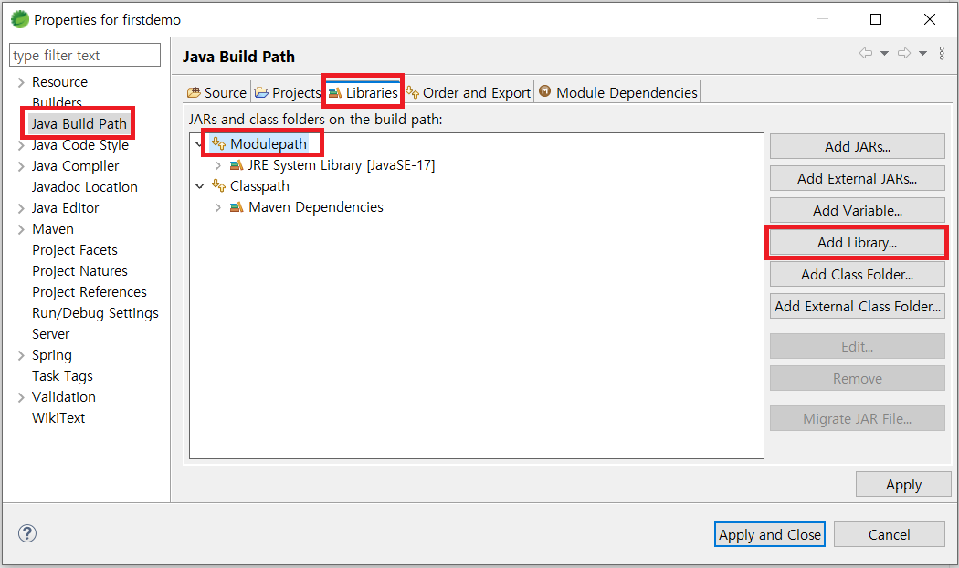만약 자바 버전이 맞지 않는 경우 Add Library....를 통해