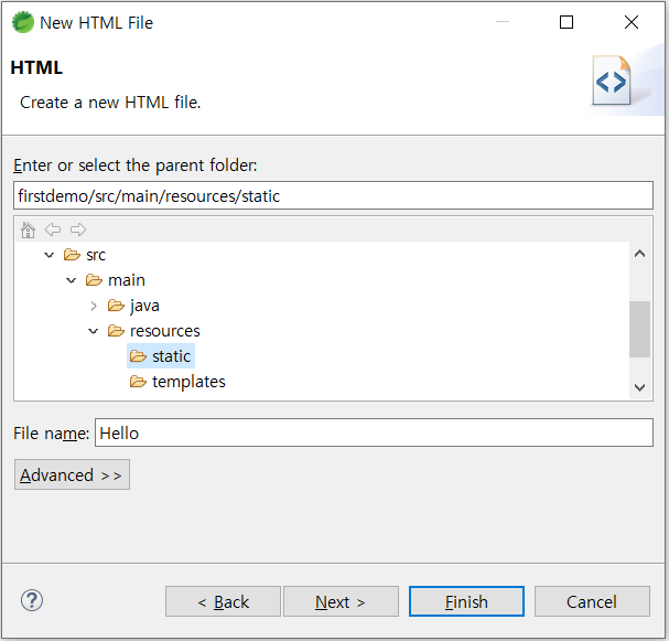 다시 로컬호스트에 접속해 /Hello.html 파일명으로 경로 연결