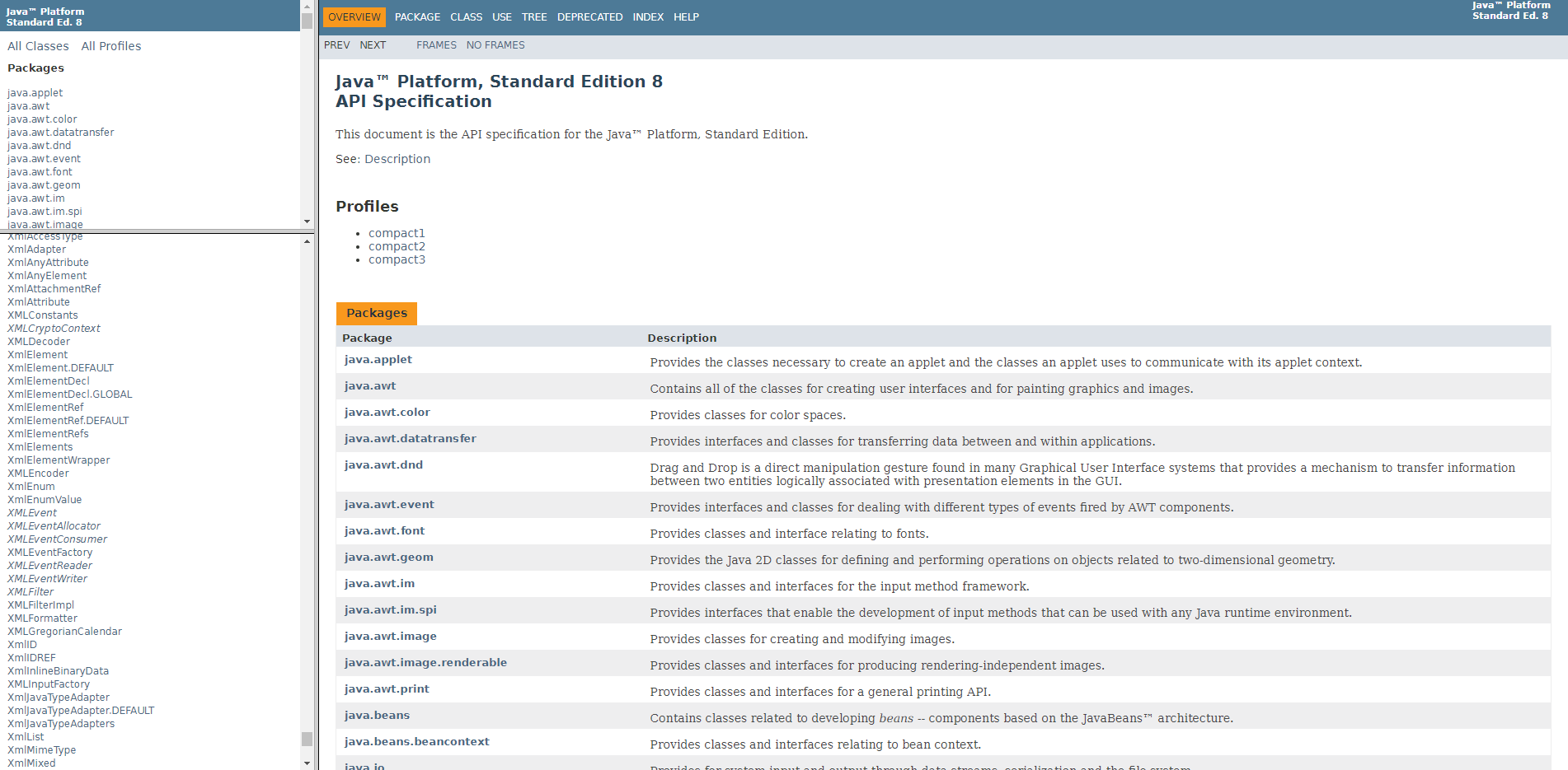 자바에서 기본적으로 제공하는 API는 문서화 시켜놓았다