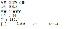 부모의 멤버까지 초기화를 하려면 자식 생성자에서 부모의 멤버변수값까지 함께 받아주어야 한다.