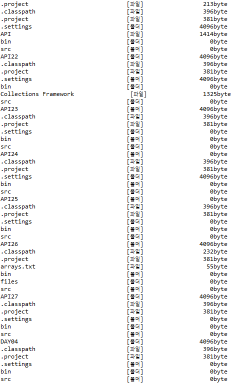 res = String.format("%-20s%10s%20dbyte", "[" + f.getName() + "]", "[폴더]", f.length());