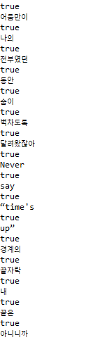 String song = "어둠만이 나의 전부였던 동안\r\n"