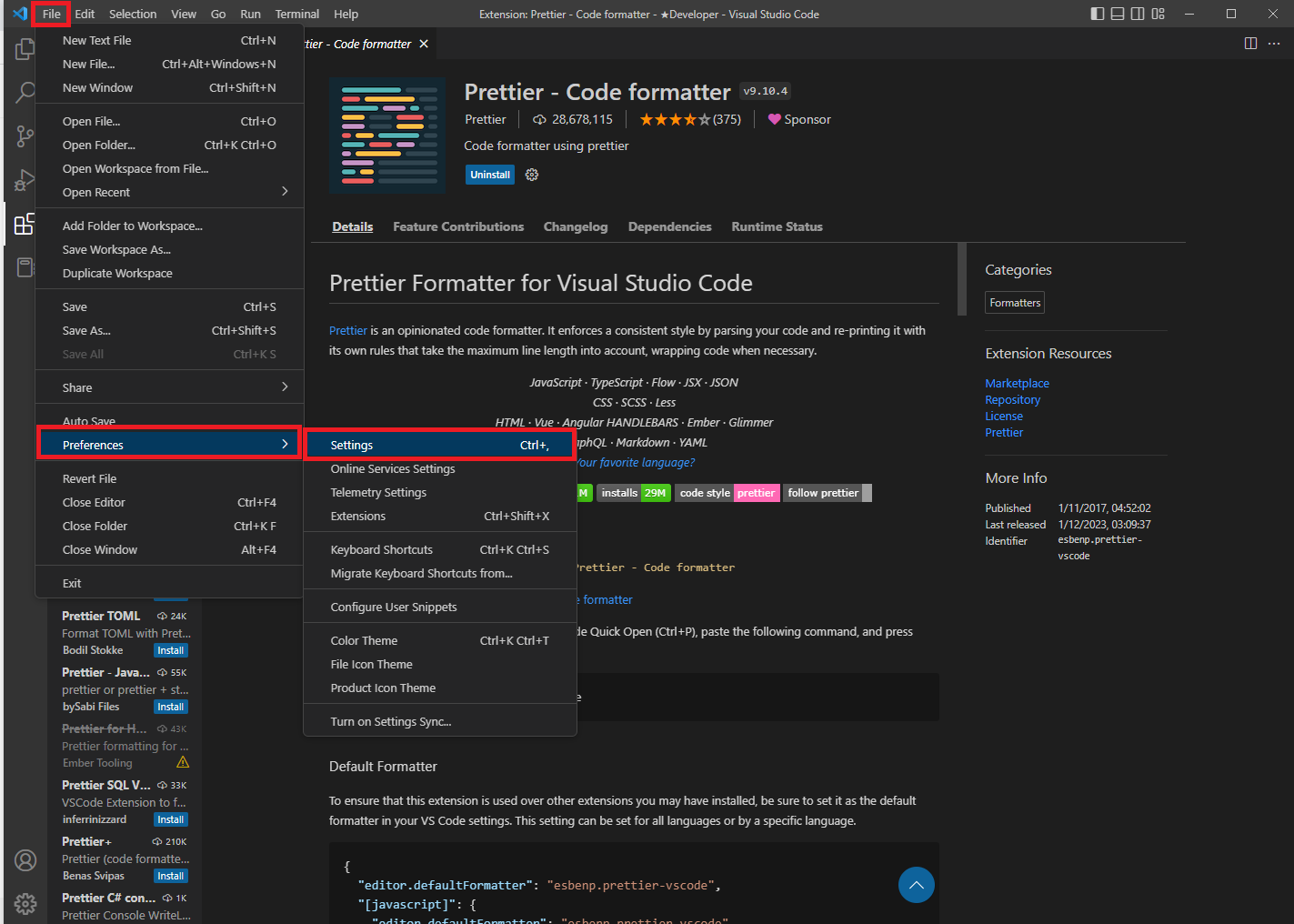 <Prettier-code formatter 적용 방법>