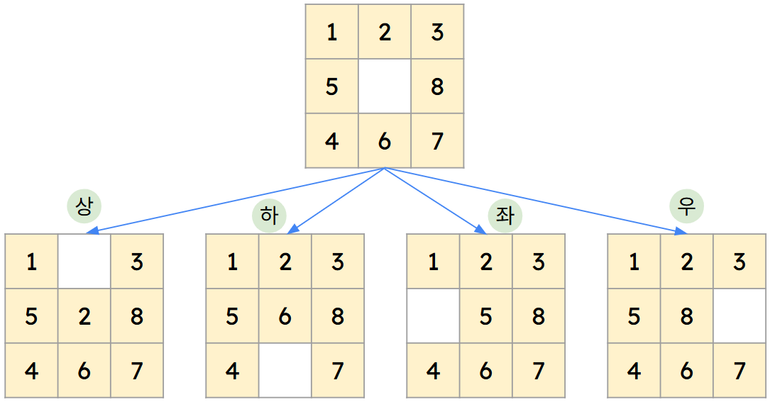 | 상태(state): 퍼즐 조각 배치 형태 |