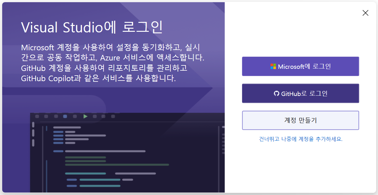 - 비주얼 스튜디오 커뮤니티(community)(무료버전): 학습용으로 사용