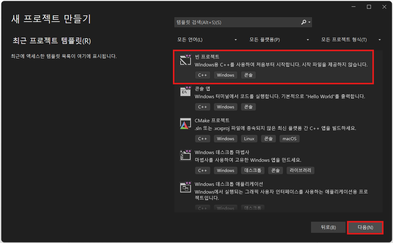 : 비주얼 프로젝트에서 새 프로젝트 만들기