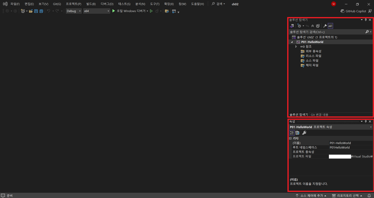 3) 솔루션 탐색기: 주 화면 오른쪽