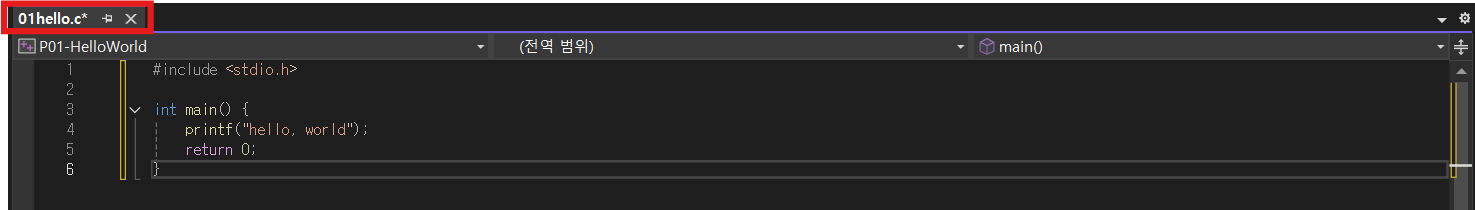 - 상단의 파일명 뒤에 *이 붙은 것은 파일이 아직 저장되지 않았다는 의미이다